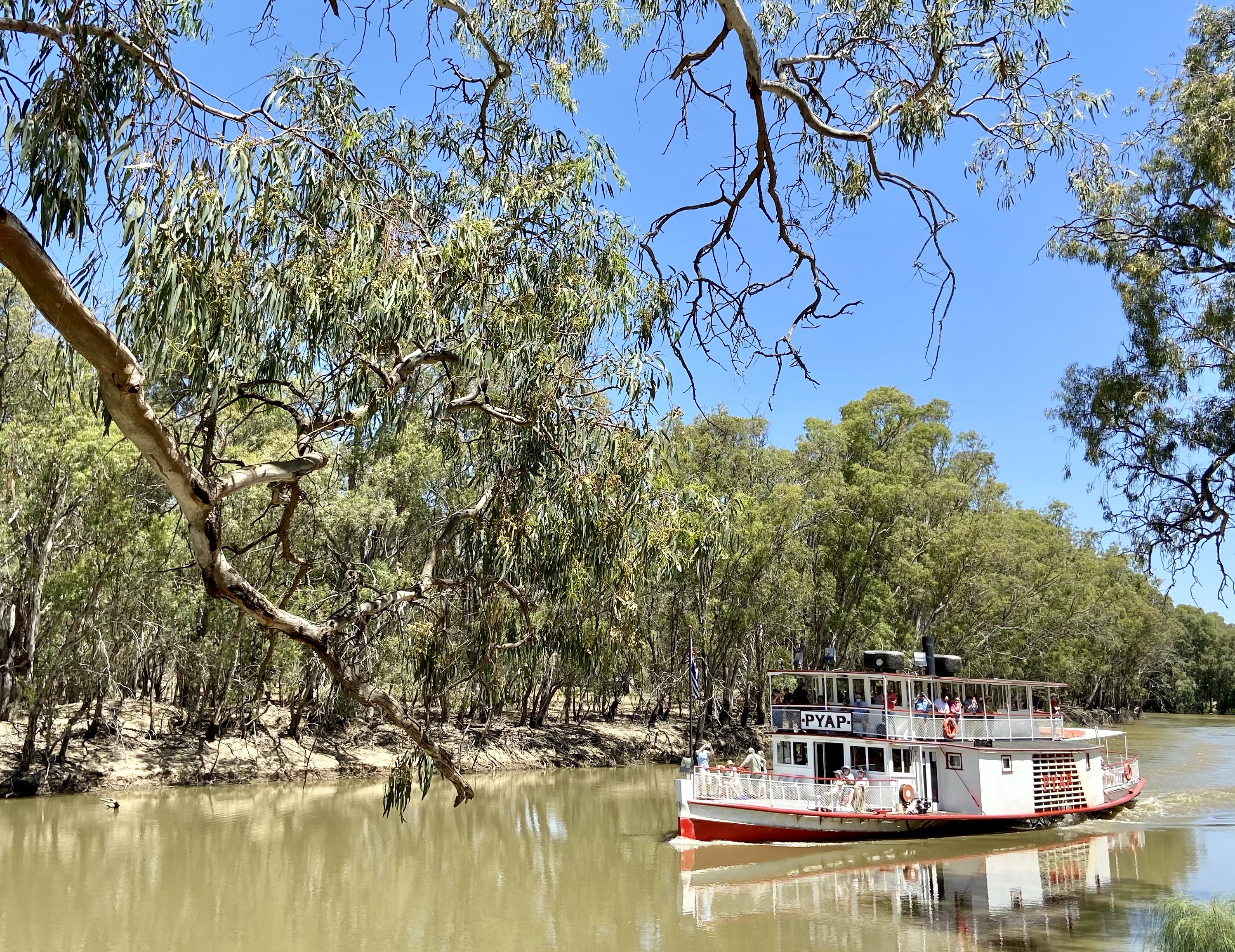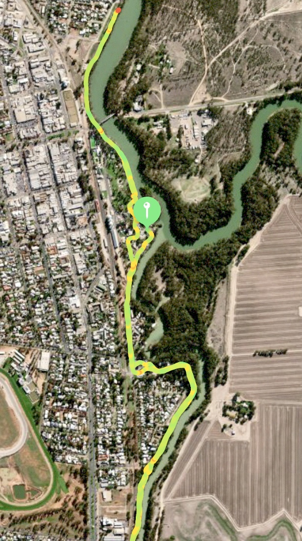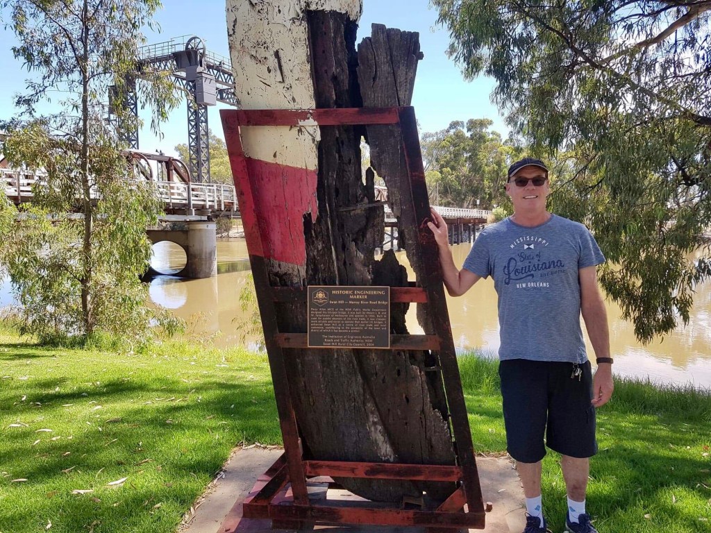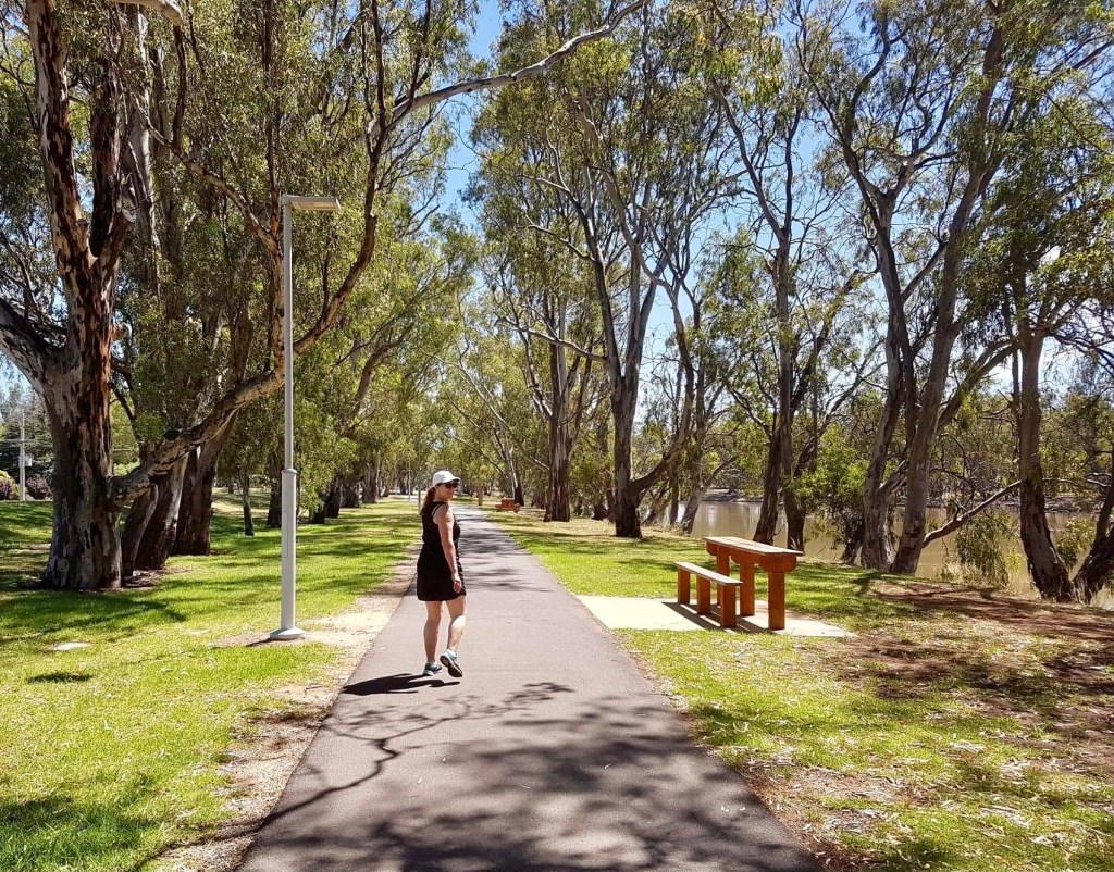 This walk beside the mighty Murray River has plenty of facilities and quirky attractions to explore along the way. We started at the Riverside Caravan Park however you can start anywhere and head in either direction. This riverfront track is approximately 4.5 kms of well maintained asphalt. If you want to walk further you can continue south on to a dirt track named the David Ellemor Trail.