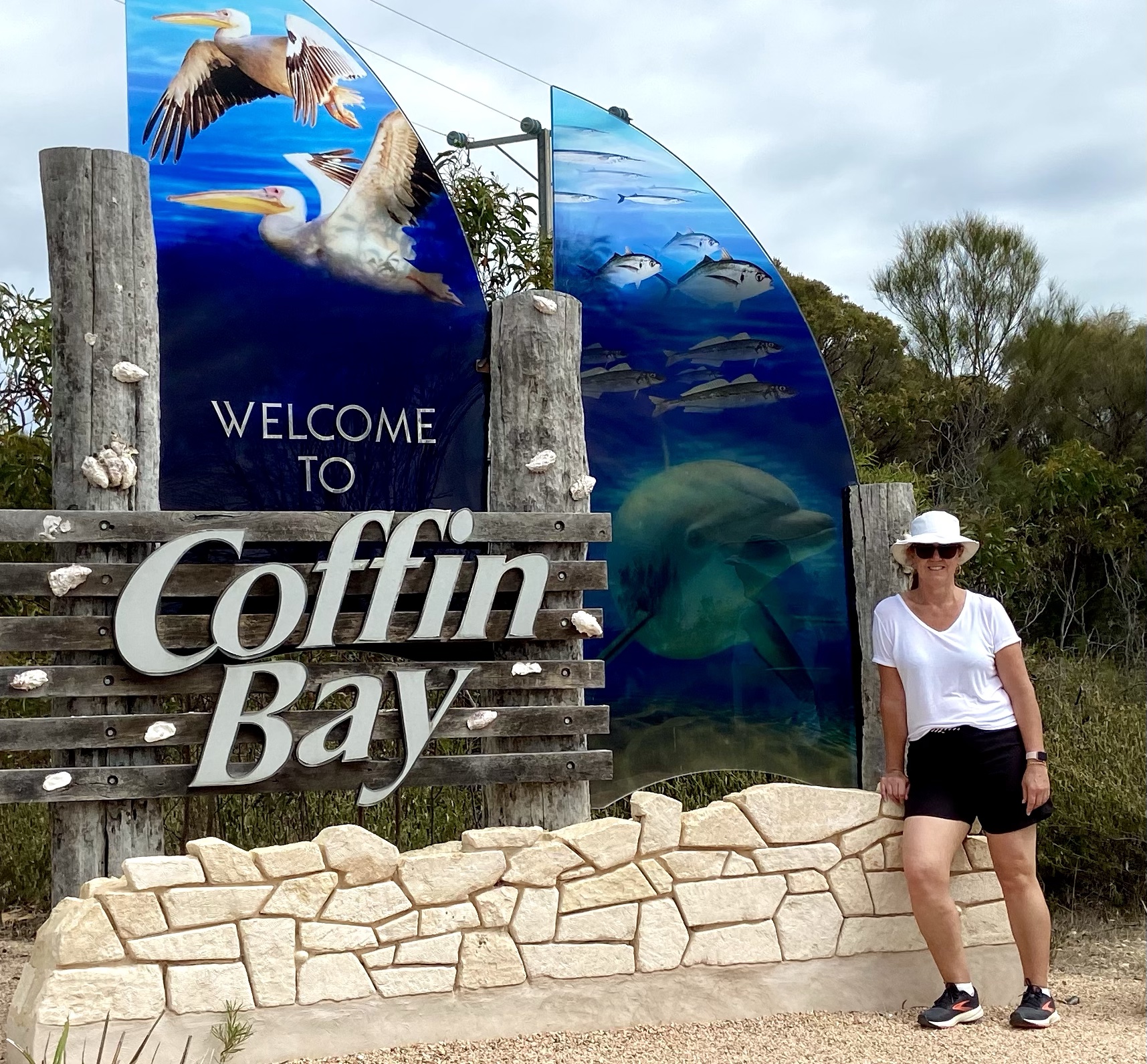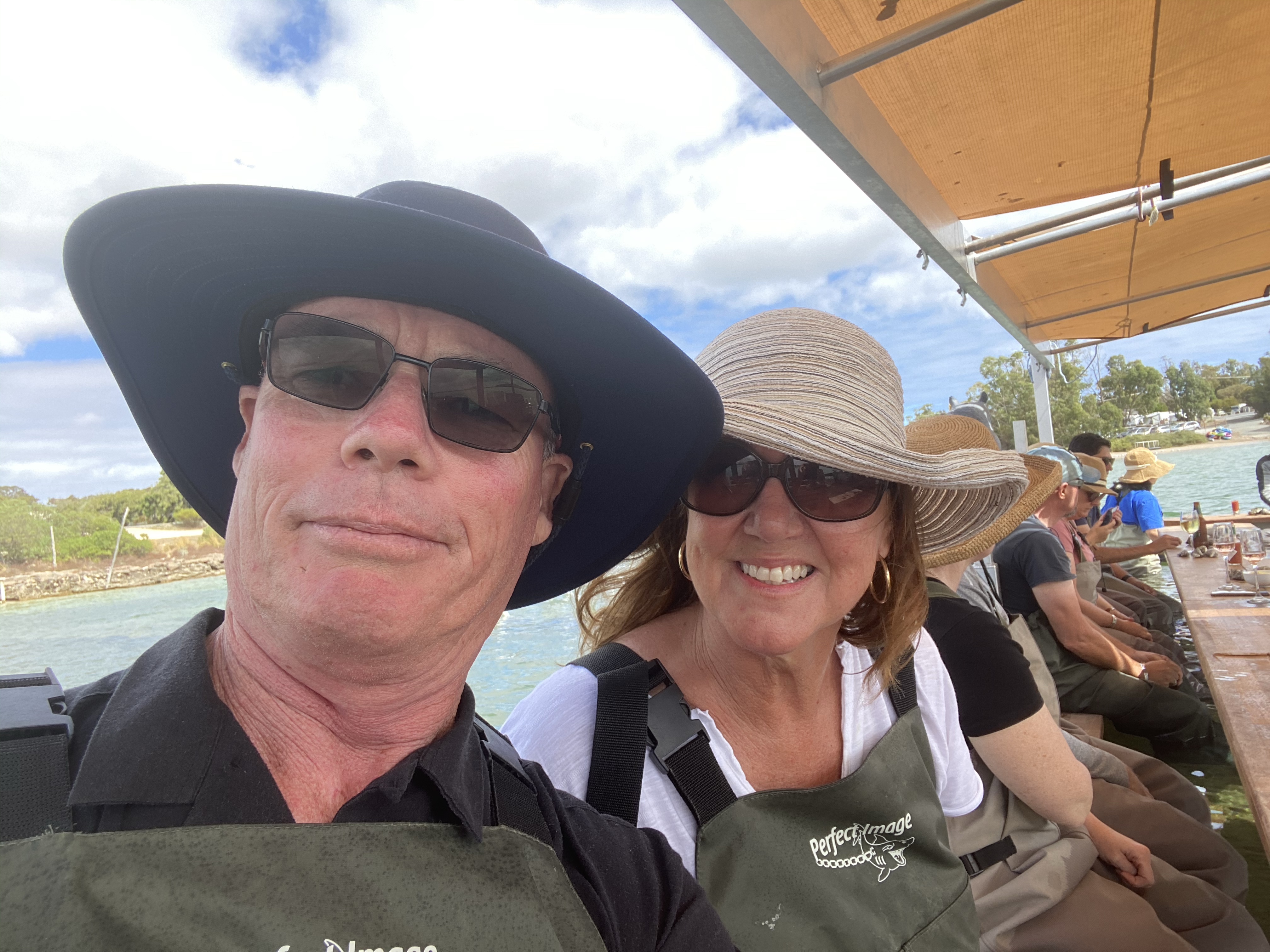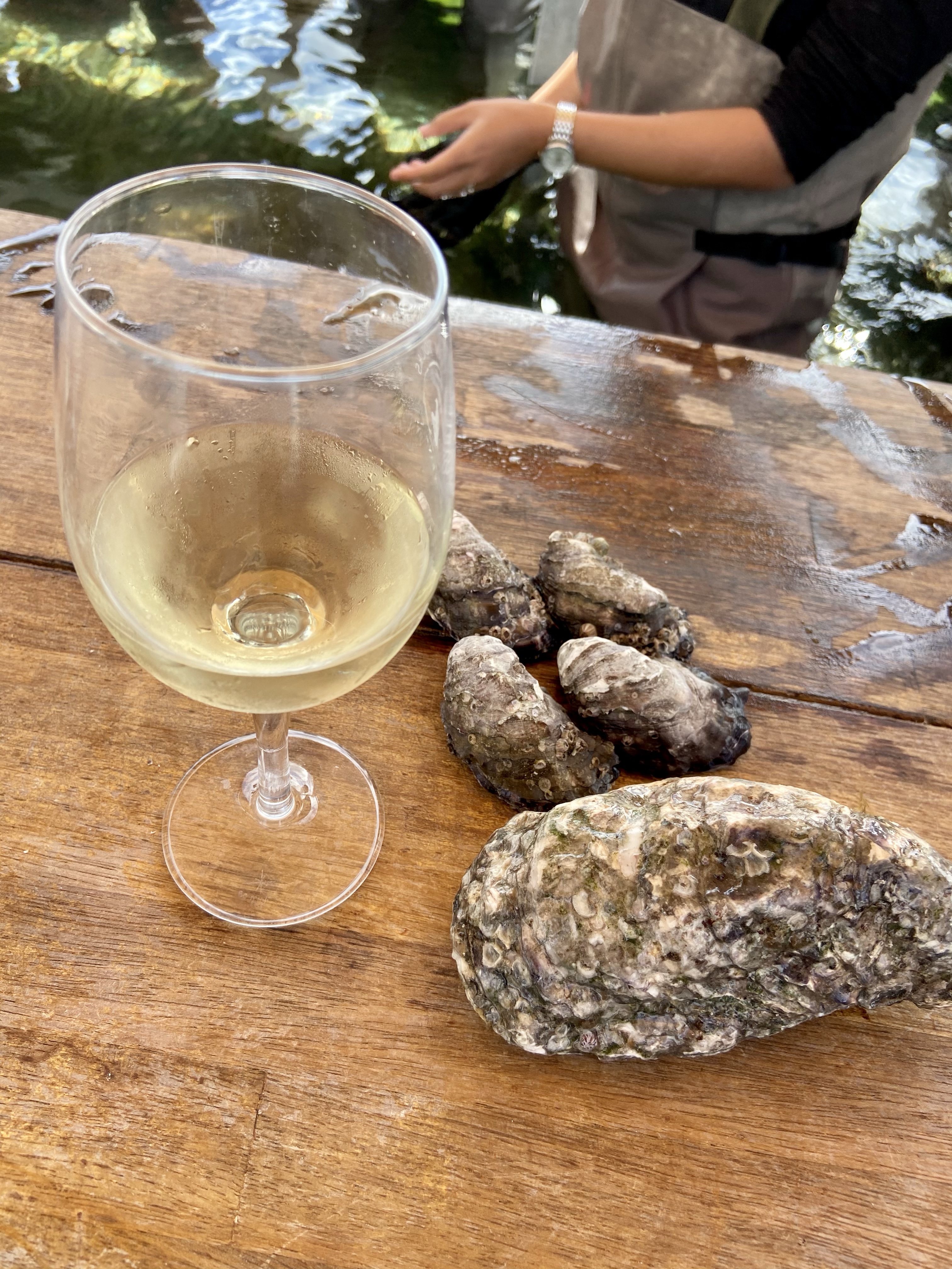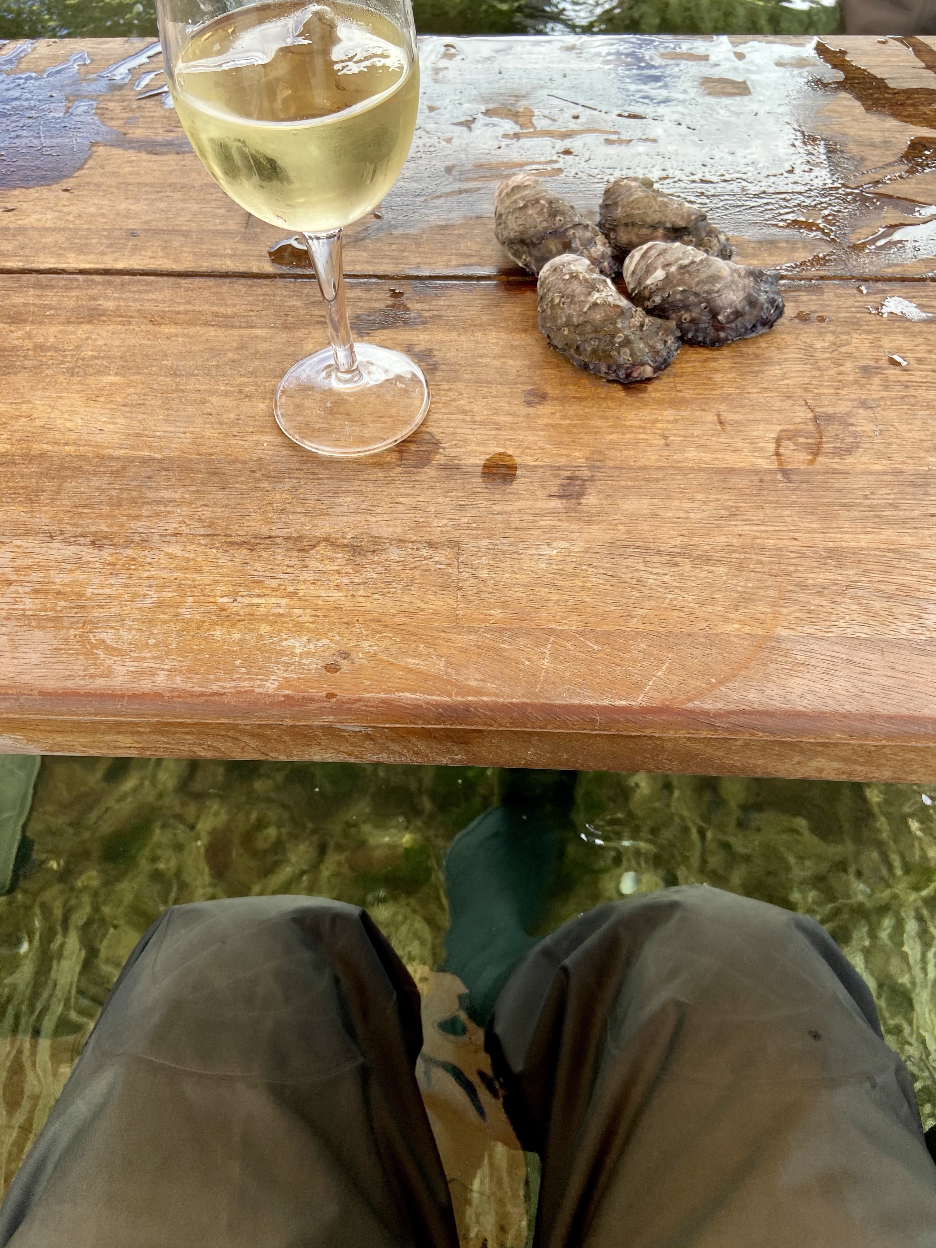 A must do in Coffin Bay is to eat the Coffin Bay Oysters on the Oyster Farm Tour, even if you don’t like oysters.🥴 We pulled on waders (that looked ridiculous – see photos as evidence) and waded out to a bar immersed in water. Then we drank wine and sampled oysters whilst learning about the oyster industry.