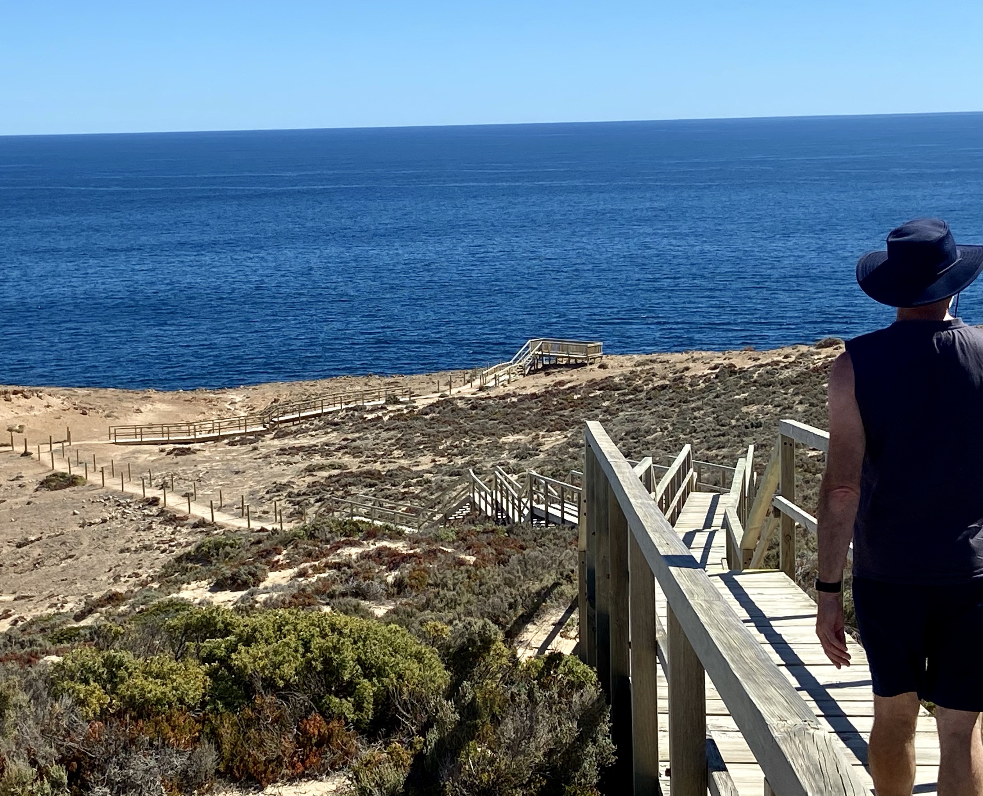 A couple of coastal scenic drives were recommended to us so we took the opportunity to get out of the heat and into an air conditioned car. Spectacular views of the Southern Ocean came into view upon every bend in the road. We stopped along the way to see the Whistling Rocks (which actually whistled) and to explore Smooth Pool, a large rock pool area.