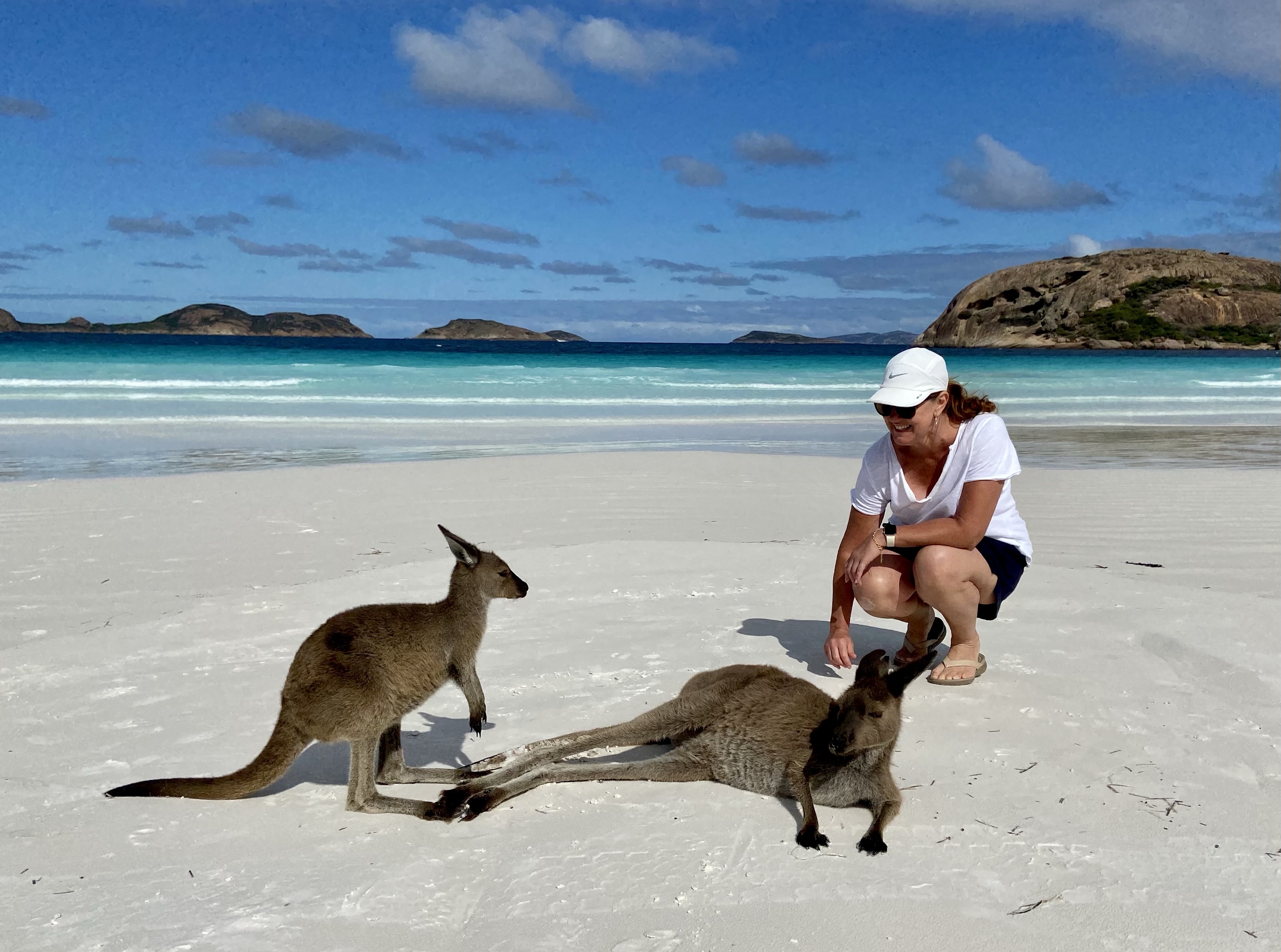 Lucky Bay has wide sandy beaches set between rocky headlands and was voted “The Whitest Beach in Australia”. It’s also home to beach dwelling Kangaroos that seem to love human interaction and pose like supermodels for each photo taken. Note: Image below shows my poster boy also joining the photo op.🤣