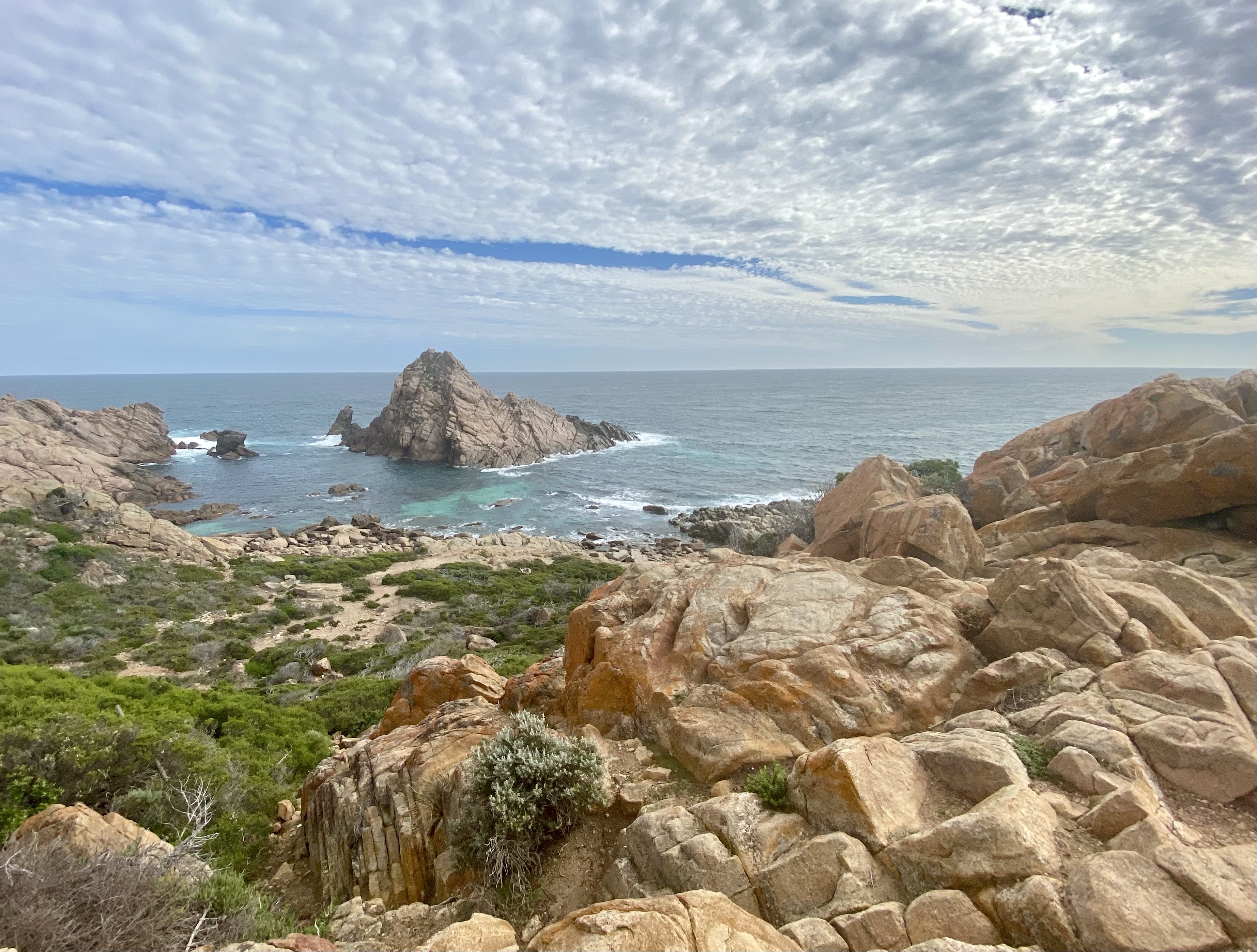 The Cape Naturaliste Lighthouse is located just 20 minute south of Busselton. Not as impressive as our last lighthouse but still worth a visit. After an hour of scenic walking from the Cape Naturaliste Lighthouse we reached a natural granite island named Sugar Loaf Rock.