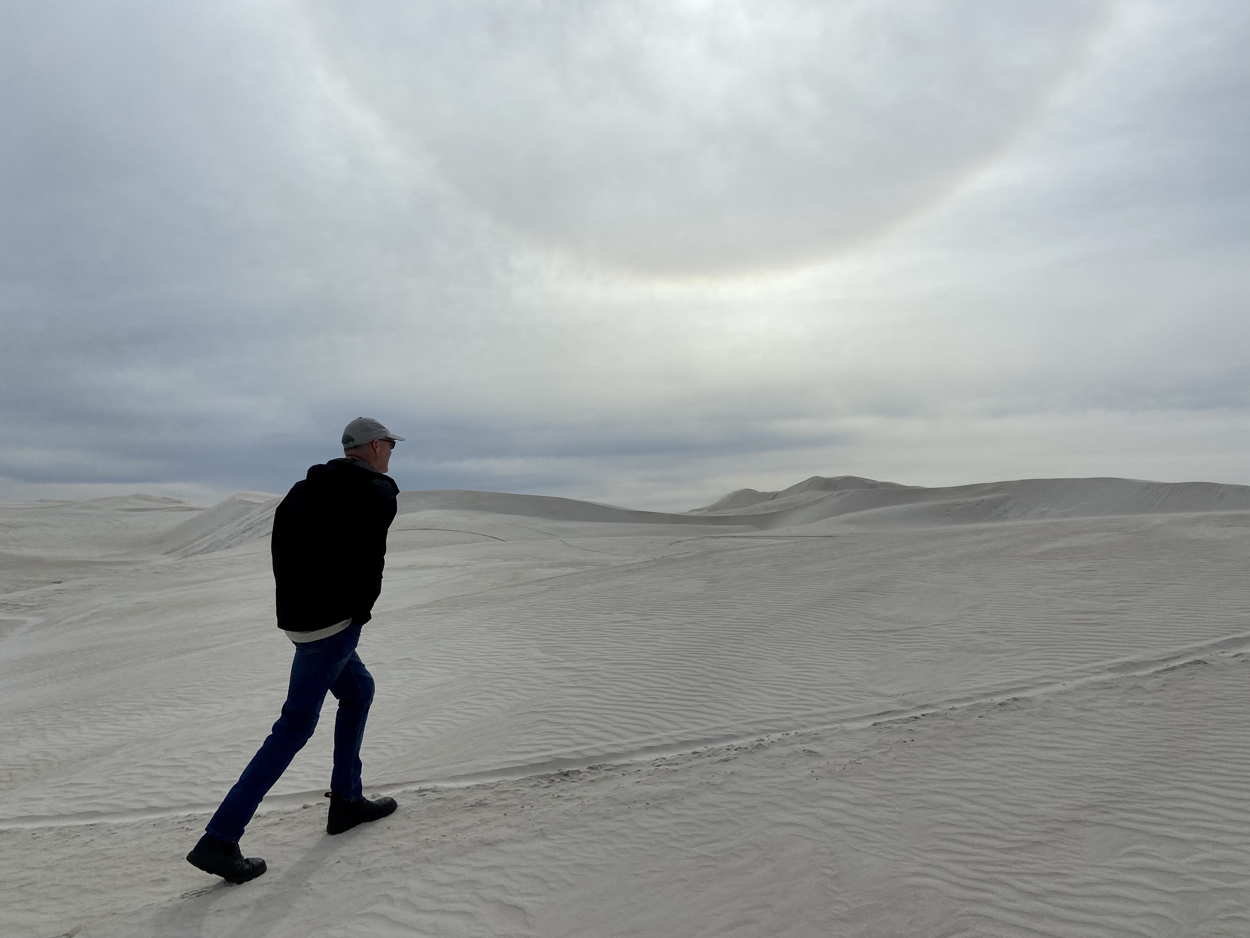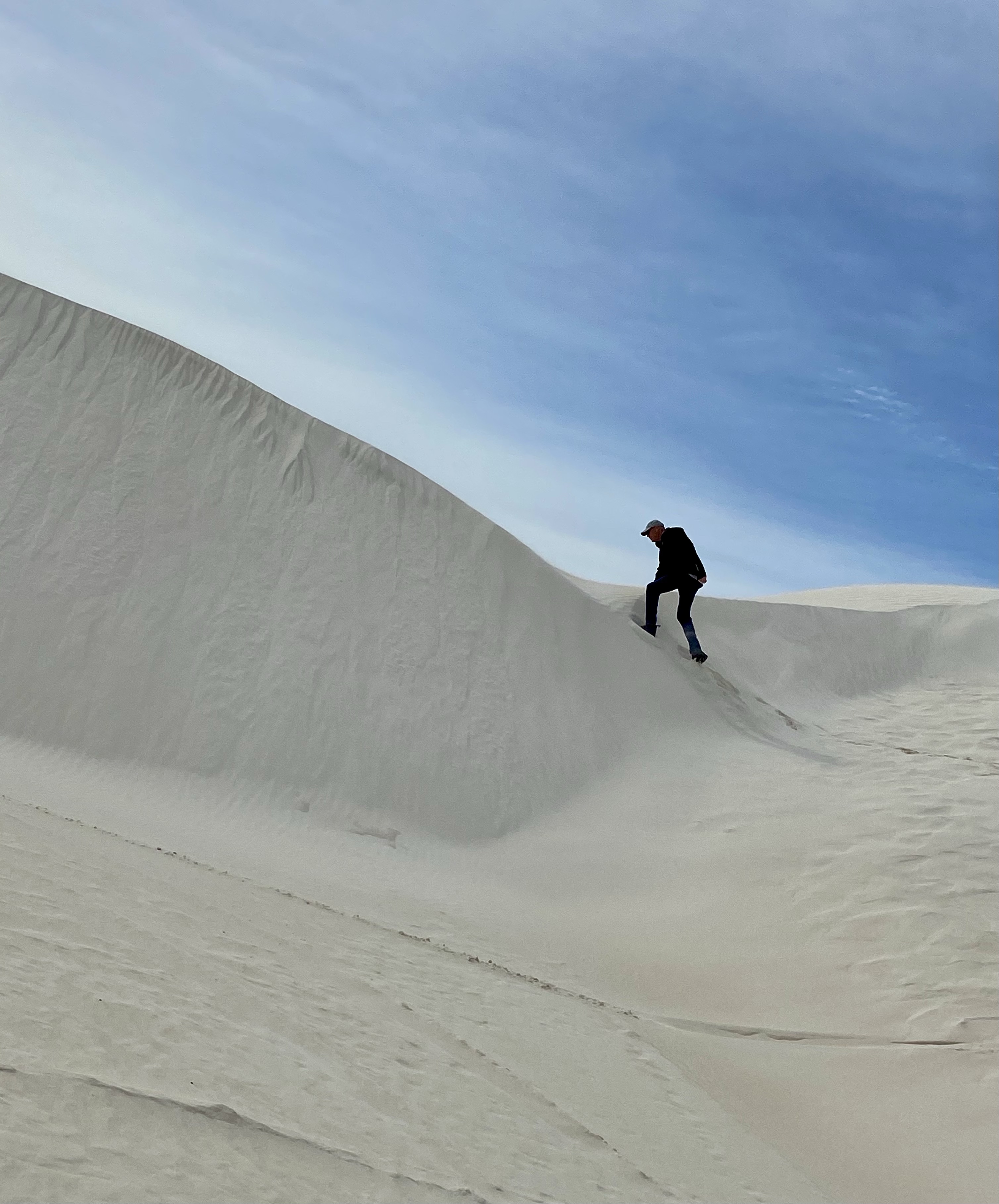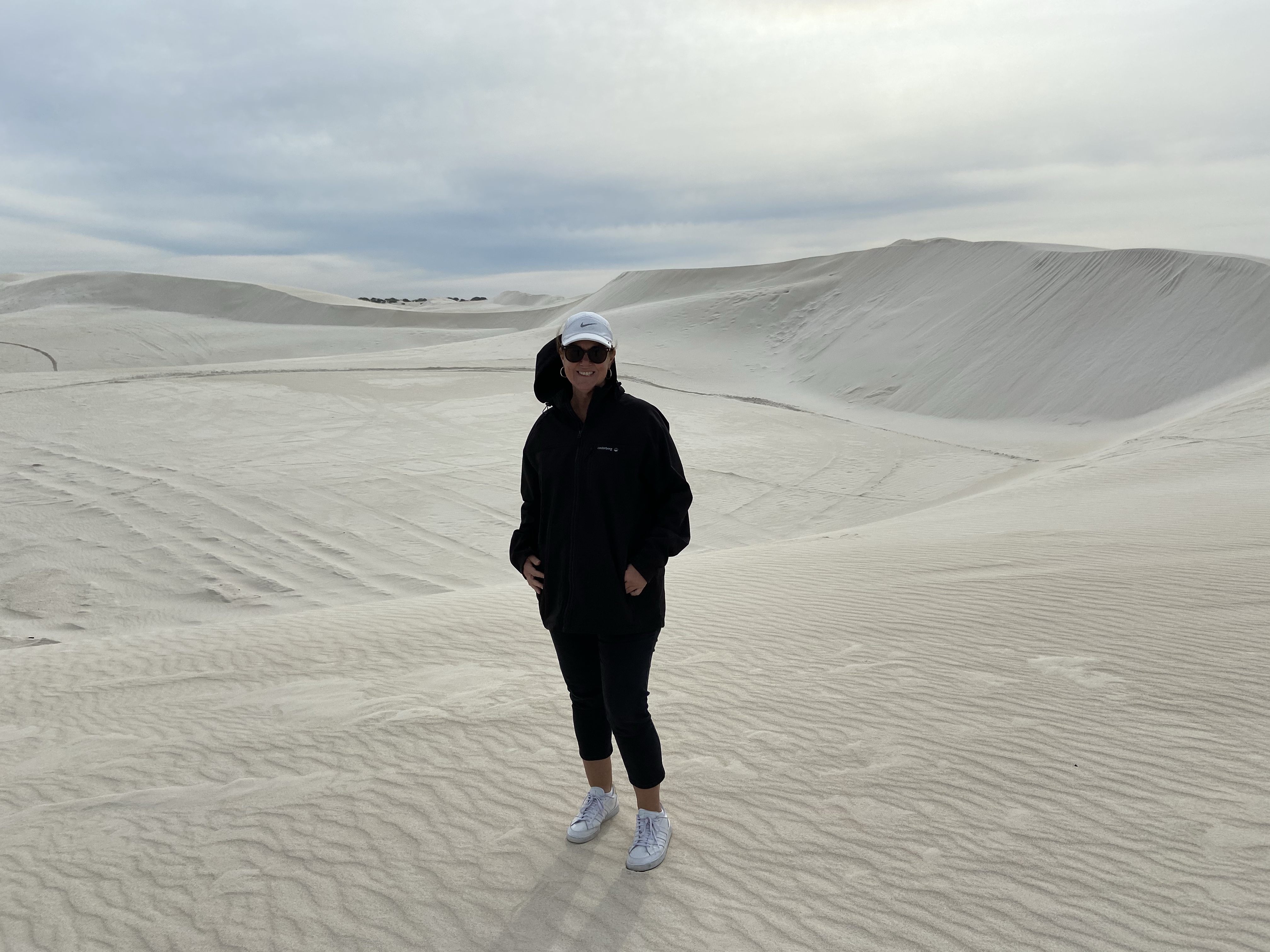 You can hire a sand-board or take a quad bike, buggy or 4WD tour and descend 40 metre Sand Dunes. As per usual we chose to walk across the pristine white dunes that appear to go on for miles. It’s not easy walking and the wind is very strong so if you face the wrong way you may end up with a mouthful of sand.😑