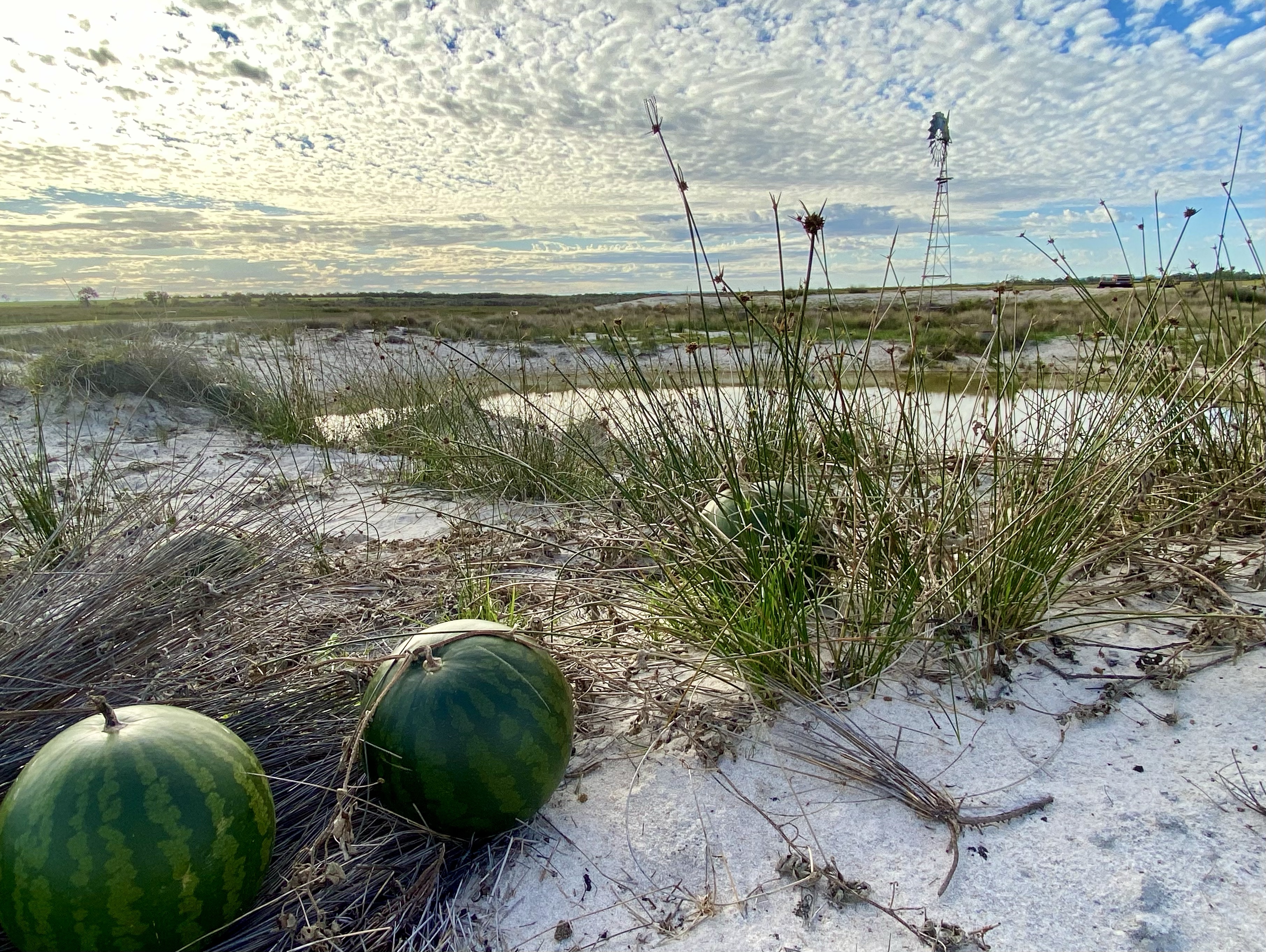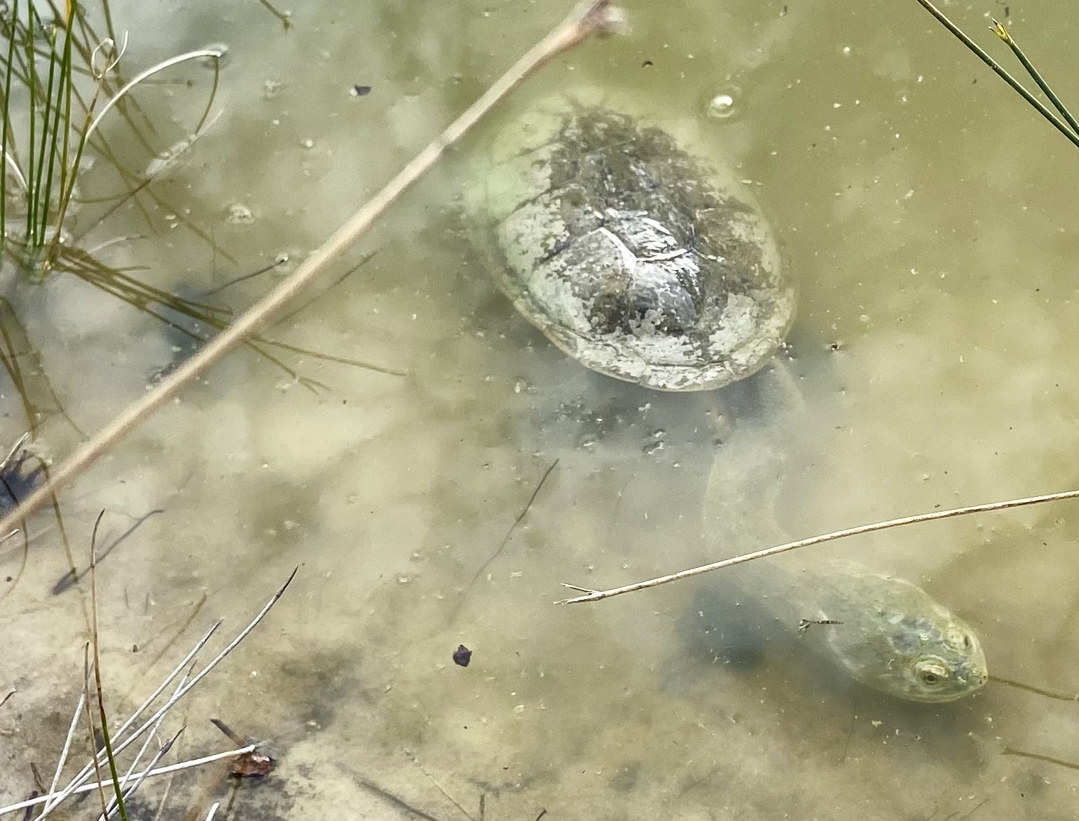 We spotted some emus as we walked to the dam to see the Western Long Necked Tortoises. We also noticed many unusual melons scattered all over the ground. These are inedible weeds called Paddy Melons and can be toxic to humans.