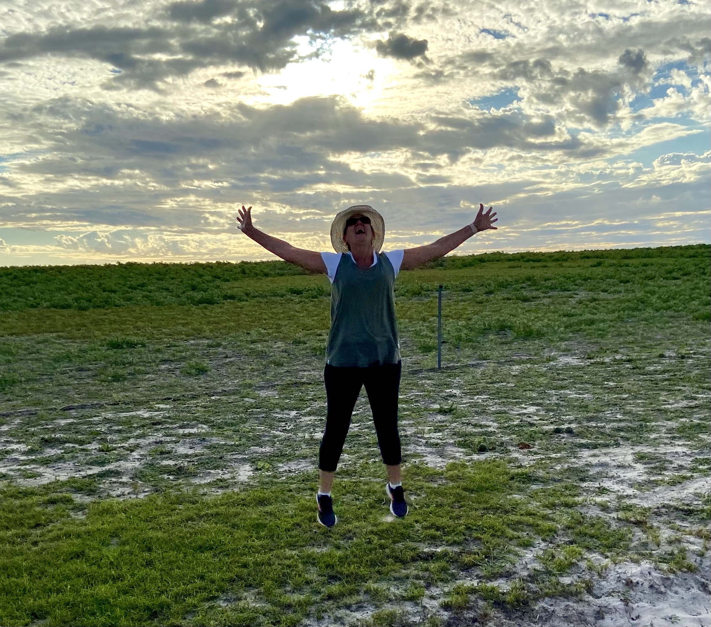 Trying a novel way to get flys off my back by jumping up and down. And no, it didn’t work but we had a laugh trying.πŸ˜†