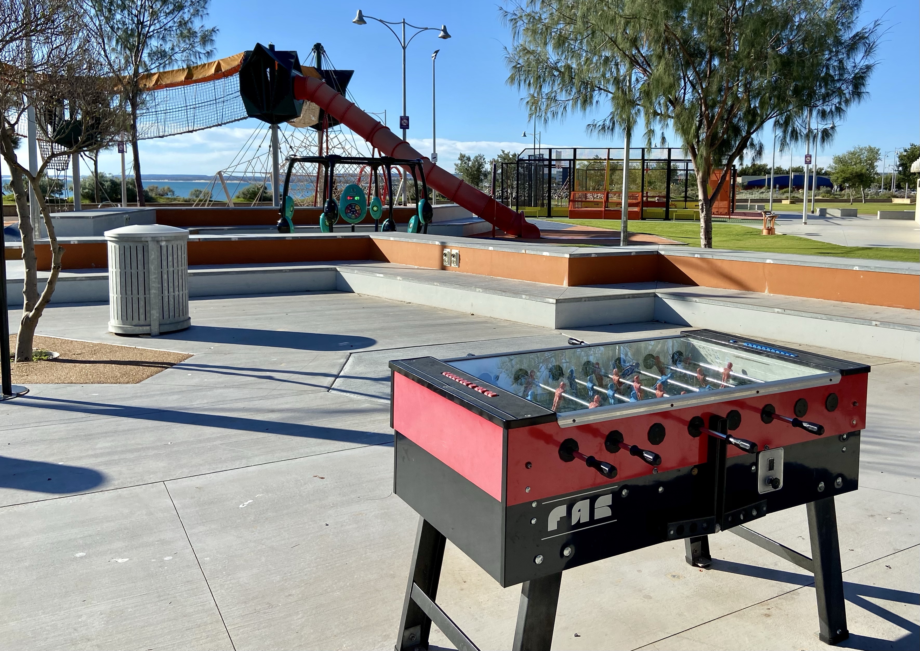 Geraldton is big old fashion country town with a mediterranean climate. We rode along the foreshore and ended at the Esplanade overlooking the Midwest Port Authority. There’s a great interactive youth precinct here that includes a rage cage, climbing boards, free wifi and cafes.